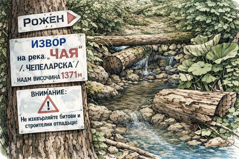 The Chepelarska River (formerly known as the Chaya River) springs at an altitude of 1,371 meters, just 5 kilometers from the town of Chepelare, in the direction of the village of Rozhen. By the time it reaches the town, it is already fast and full of water.