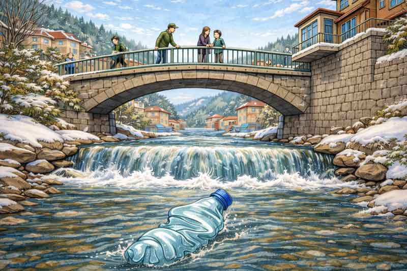 How an ordinary plastic bottle follows a river, becoming a scientific adventure and a reason to ask big questions about nature, people, and the traces we leave behind